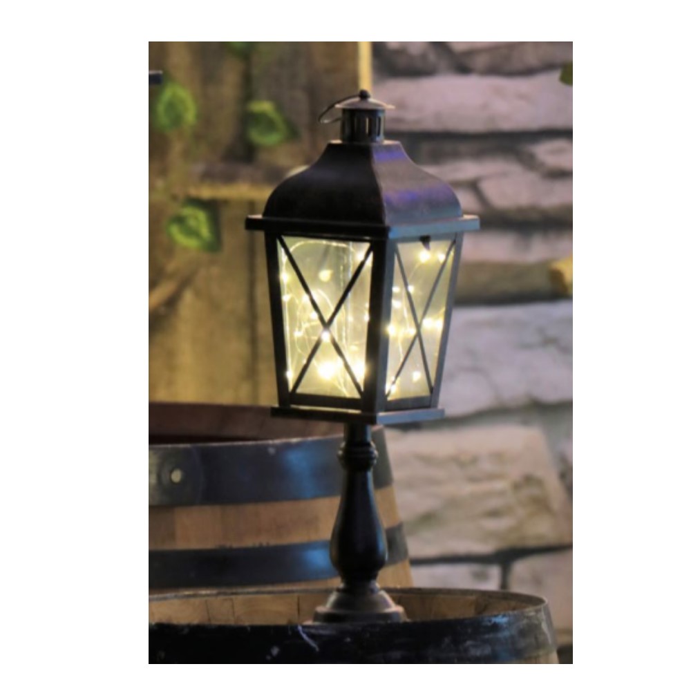 Lanterna London Style in metallo da decorazione sia interna che esterna con gocce di led a 3 batterie AAA (non incluse).