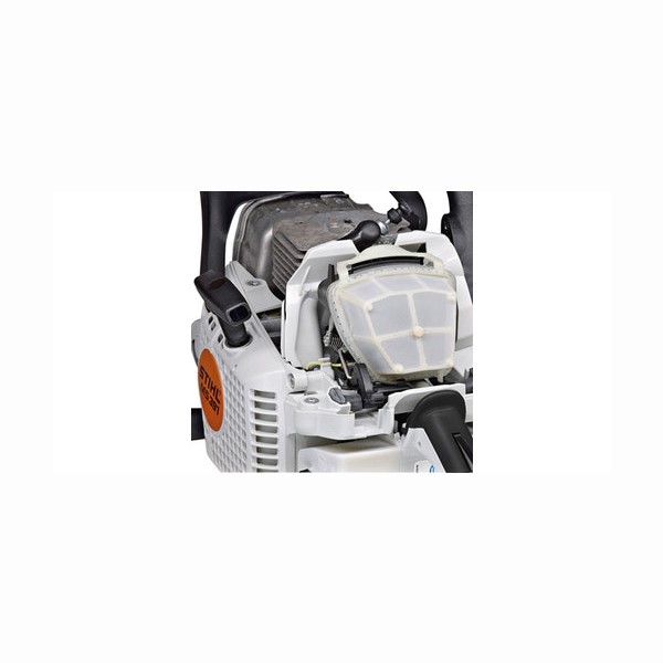 Questo sistema innovativo consente una durata del filtro notevolmente maggiore. Infatti, grazie al prefiltraggio elimina le particelle di sporcizia più grossolane, alleggerendo il lavoro del filtro vero e proprio. La motosega può funzionare, senza che sia necessario pulire il filtro, più a lungo rispetto a una motosega senza questo tipo di filtro.